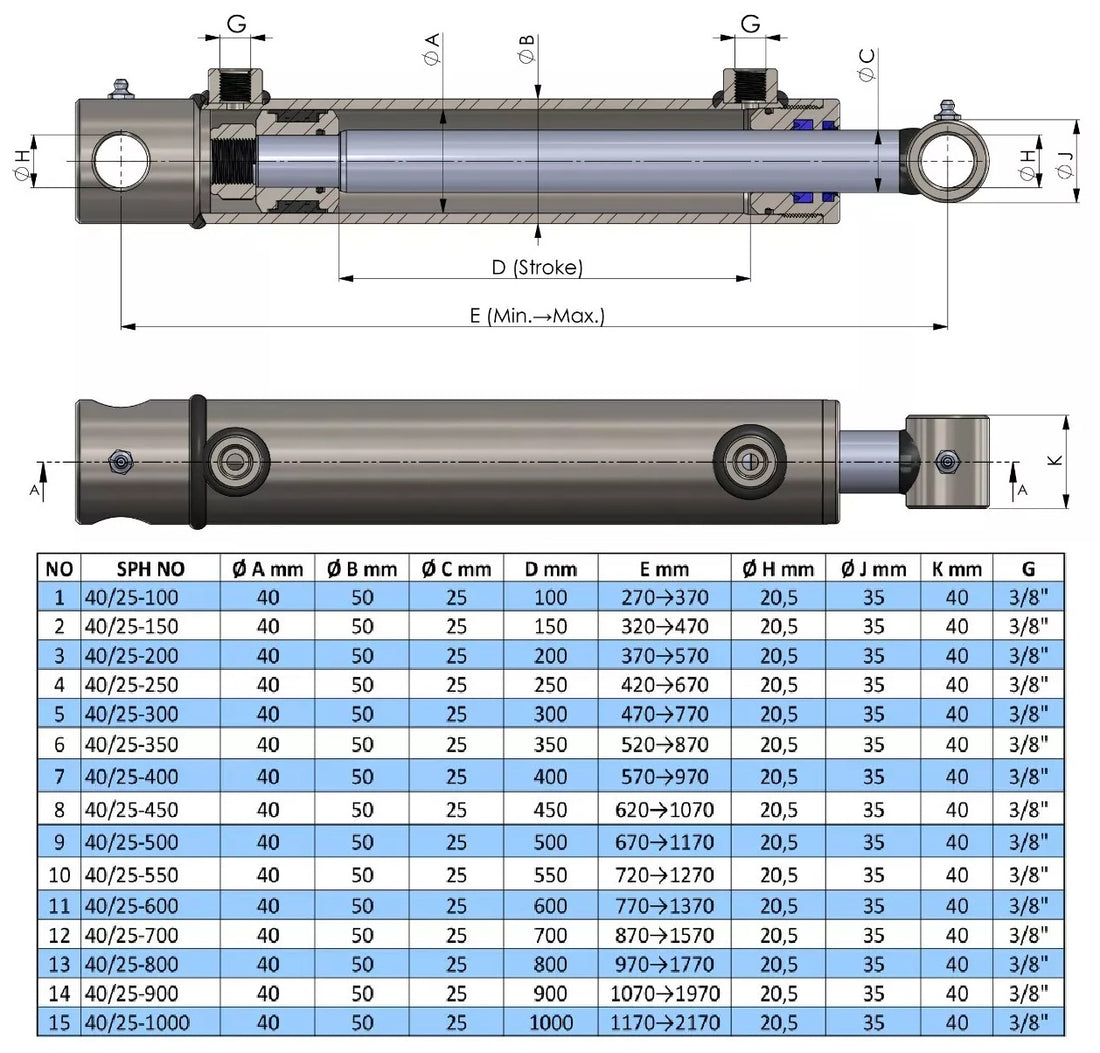 Double Acting Hydraulic Cylinder Hole Type (40/25)
