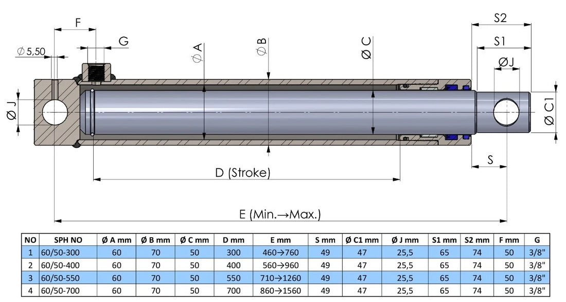 Single Acting Hydraulic Cylinder Hole Type (60/50)