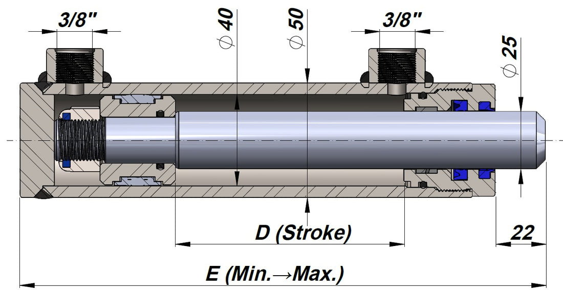 Kaksitoiminen hydraulisylinteri standardi (40/25)