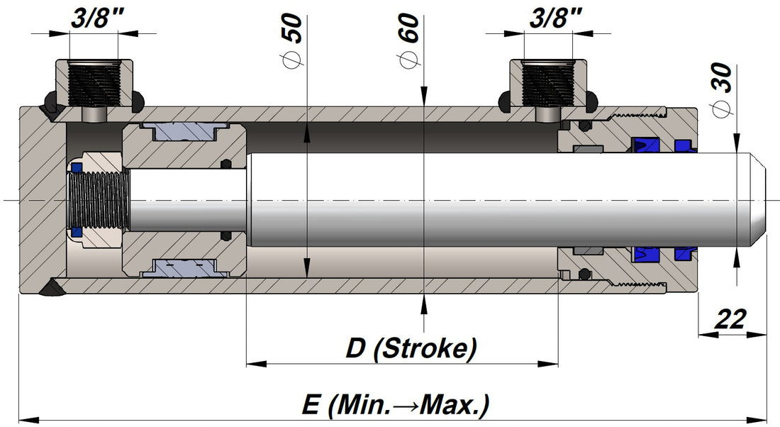 Hydraulisylinteri on valmistettu honotusta teräsputkesta. Putken sisäpinta on valmistettu materiaalista S235 JR. Mäntätanko on kovakromattu, samoin kuin männän leuat. Tämä erityinen pintakäsittely tekee teräksestä sileän ja vähentää näin tiivisteen kulumista minimiin. Tämän tyyppinen kromaus lisää myös merkittävästi kestävyyttä. Tämä mahdollistaa myös pitkän käyttöiän takaamisen korroosiosuojauksen ansiosta. Meidän ilmoittamamme puristus- ja vetovoima on määritelty käyttöpainetta 2610 PSI / 180 bar vasten. Voit myös kuormittaa sitä huippupaineeseen 3335 PSI / 230 bar.