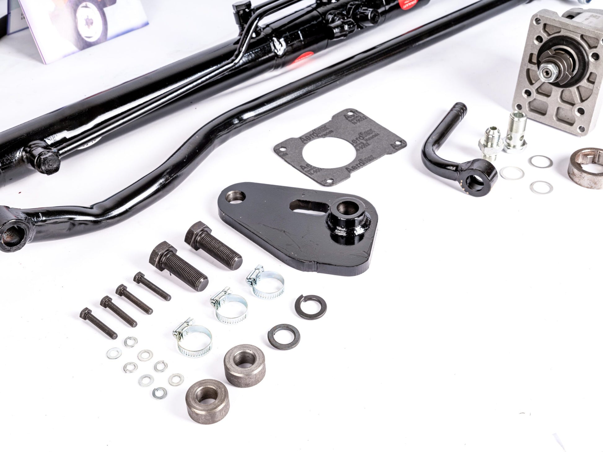 Les anciens tracteurs Fiat nécessitent souvent beaucoup de force pour diriger, surtout lorsqu'ils sont utilisés avec des outils lourds. Un kit de conversion de direction assistée offre :