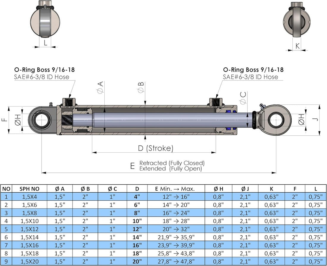 Dubbelwerkende Hydraulische Cilinder - Draaibare Oogcilinder Universeel - Hydraulische Cilinders 1,5"- 2" (verschillende varianten)
