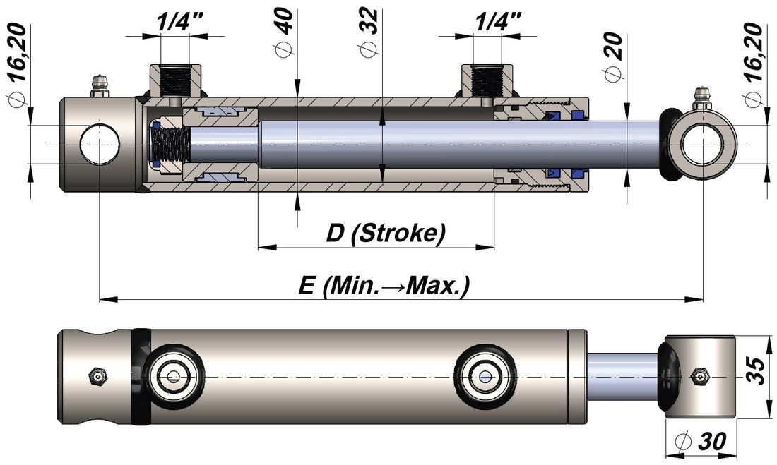 Hydraulische Cilinder Dubbelwerkend met Bevestiging (32/20)