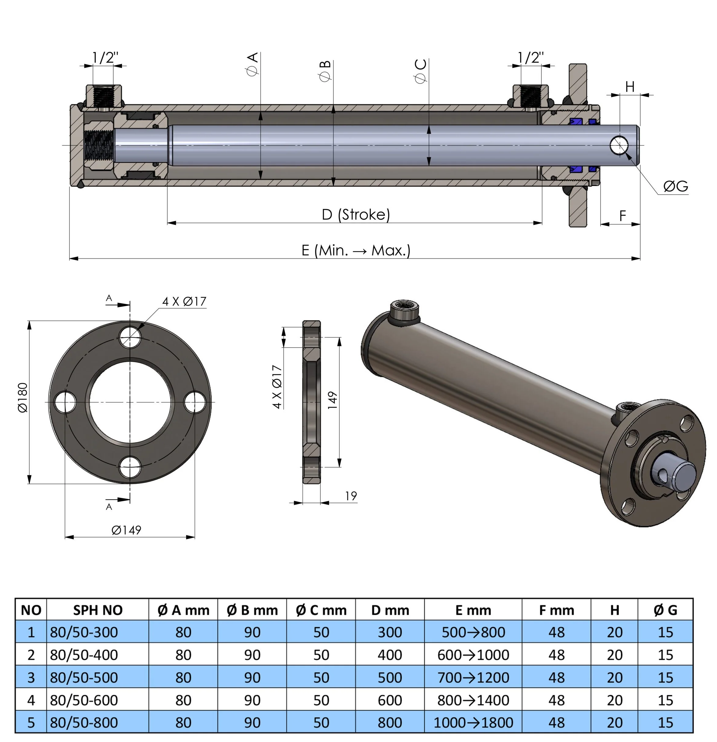 Double Acting Hydraulic Cylinder With Front Flange (80/50)