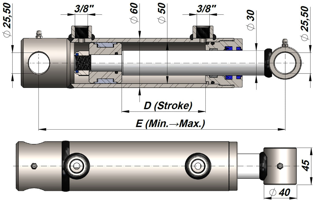 Cilindro Hidráulico de Dupla Ação Tipo Furo (50/30)