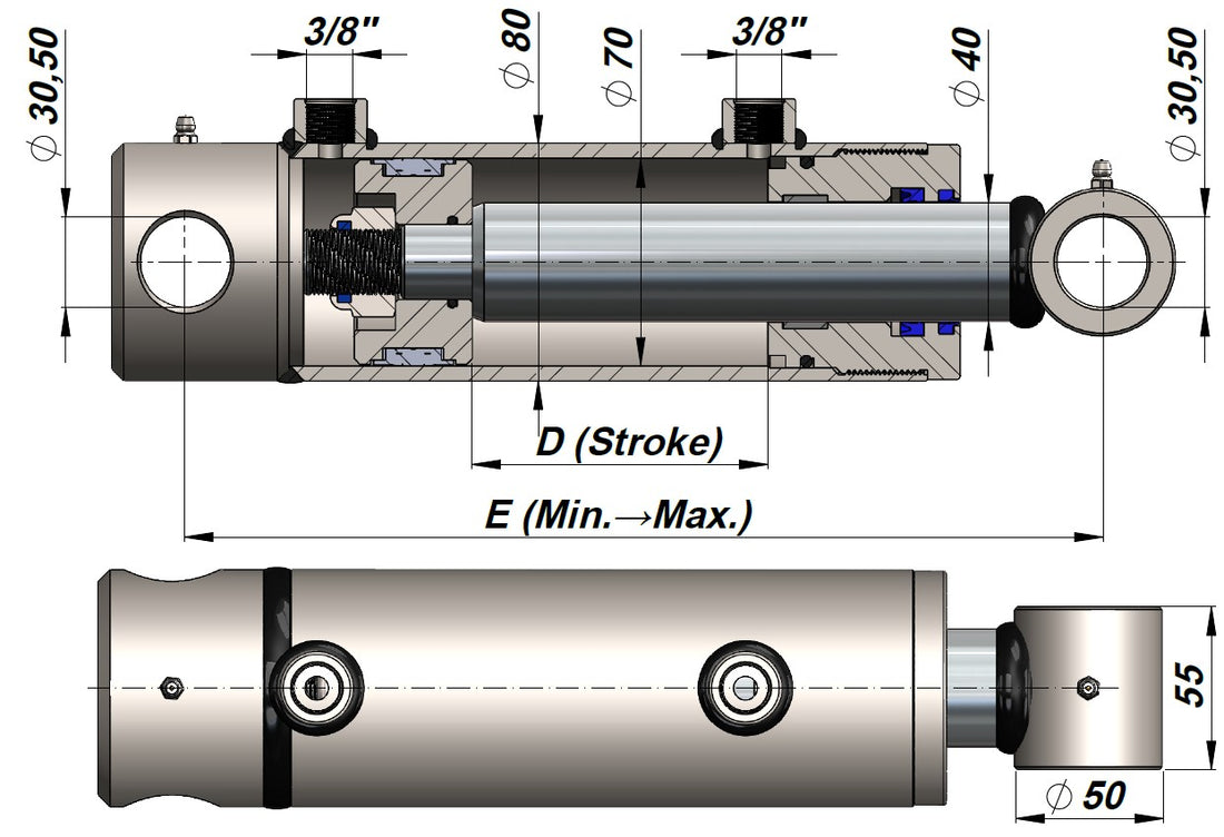 Dubbelverkande hydraulcylinderns håltyp (70/40)