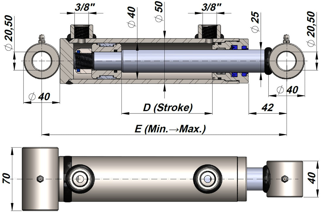 Dubbelverkande hydraulcylindrar med rörändar (40/25)